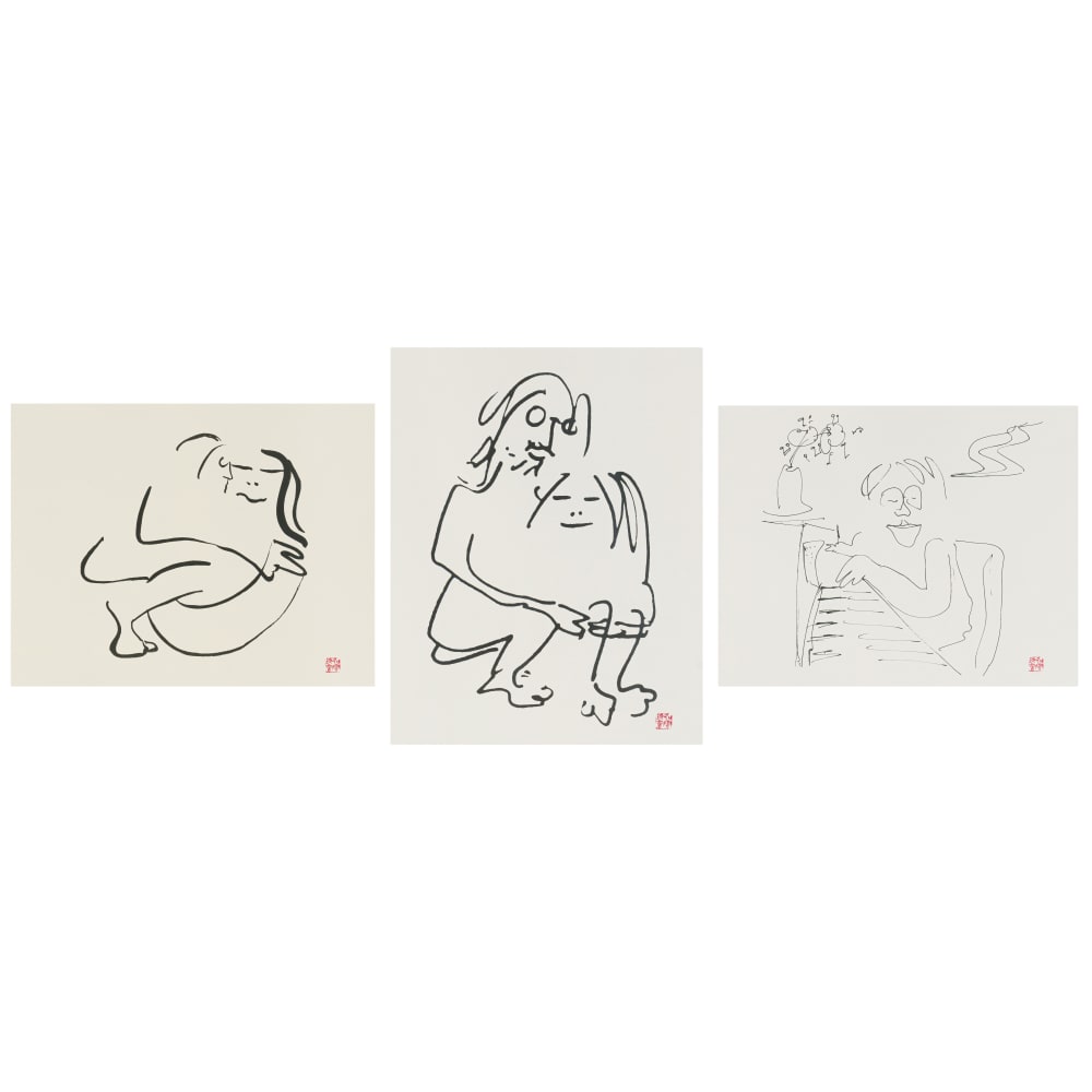 image size: (1) 39 by 49cm; (2) 49 by 39cm; (3) 38 by 50cm; 114 by 84 by 4,5cm including frame. (1) numbered 892/3000E and stamped with John Lennon's chopmark (2) numbered 889/3000E and stamped with John Lennon's chopmark (3) numbered 892/3000E and s | |