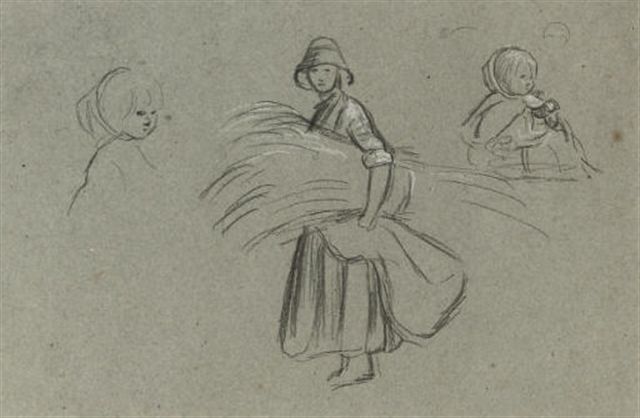 | Study of figures harvesting (illustrated); Study of clouds; and Study of birds | |