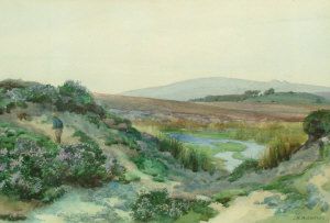 Moorland scene with a lone figure