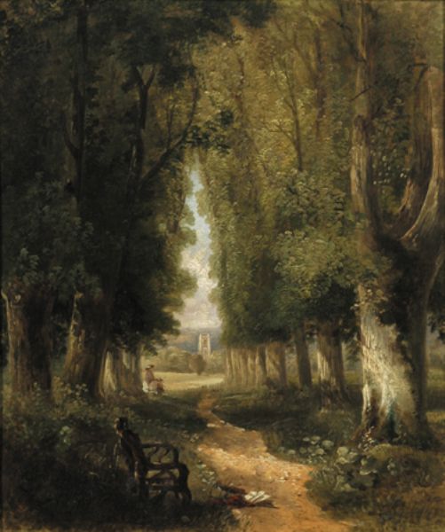 | Englische Parklandschaft mit alter baumbestandener Allee | |