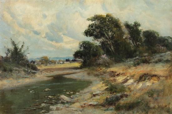 LANDSCAPE OF A MEANDERING STREAM AT LOW EBB