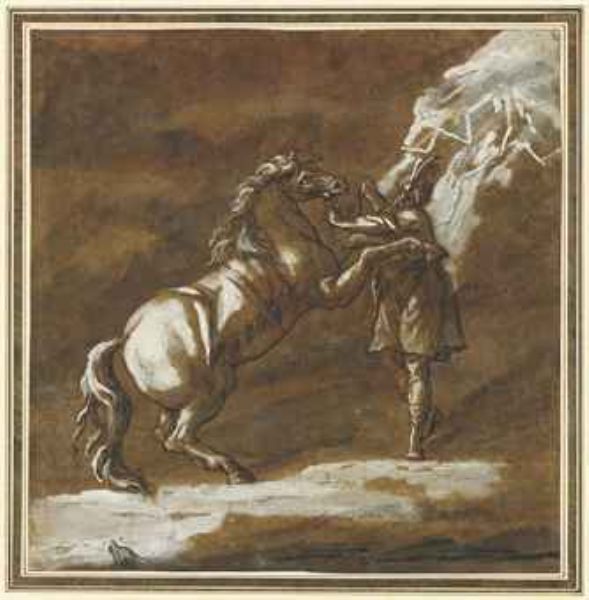 | Chalk pen and black ink, brown wash, heightened with white on brown prepared paper | |