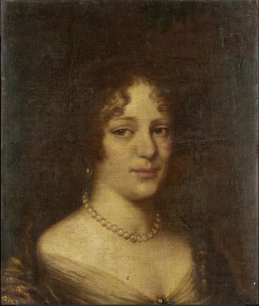 Portrait of a lady, bust-length, in a silk dress and pearl necklace