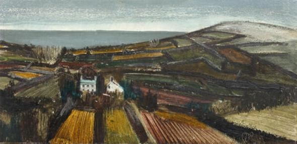 Rural cottages in a coastal landscape