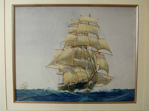 Sailing ship running before the wind