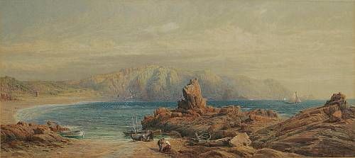 | St. Brelade's Bay, an extensive view of the bay with fisherfolk and beached boats to the fore | |