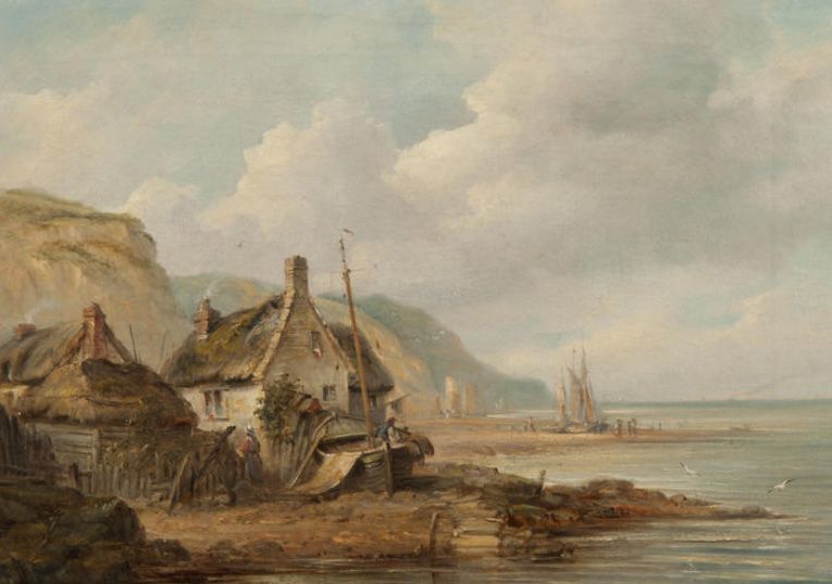 Figures and cotage on the beach at Sidmouth