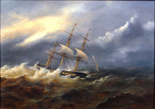 Seascape with clipper ship in stormy seas