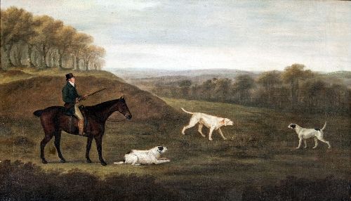Huntsman On A Bay Horse With Three Gundogs