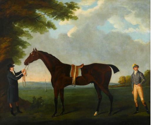 | 'DIAMOND,' HELD BY A GROOM, WITH HIS JOCKEY DENNIS FITZPATRICK, IN A LANDSCAPE | |