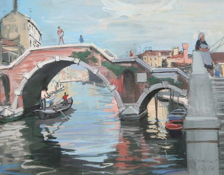 | CANAL SCENE WITH MAN STANDING ON A BRIDGE | |
