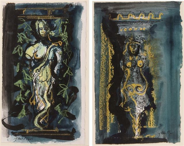 | A pair, Caryatids, studies of male figures used as pillars to support an entablature | |