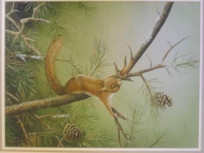 Red Squirrel on Fir Branch