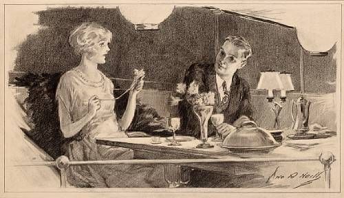 | A young couple in a restaurant, illustration for an unidentified publication | |