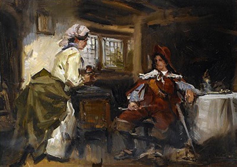 A CAVALIER IN AN INN; LANDSCAPE