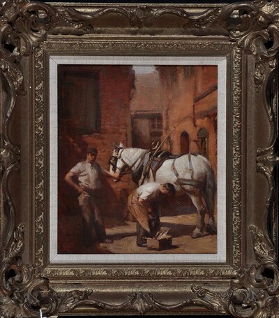 Farriers shoeing a horse