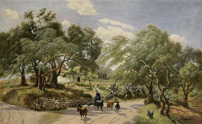 Junge Ziegenhirtin in südländischer Sommerlandschaft