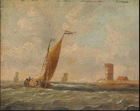 EXTENSIVE LANDSCAPE WITH WAYFARERS RESTING ON AN ENBANKMENT