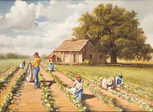 painting of African Americans Picking Cotton
