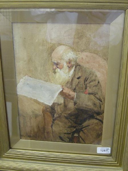 | OLD MAN READING A NEWSPAPER; OLD WOMAN PEELING VEGETABLES A | |