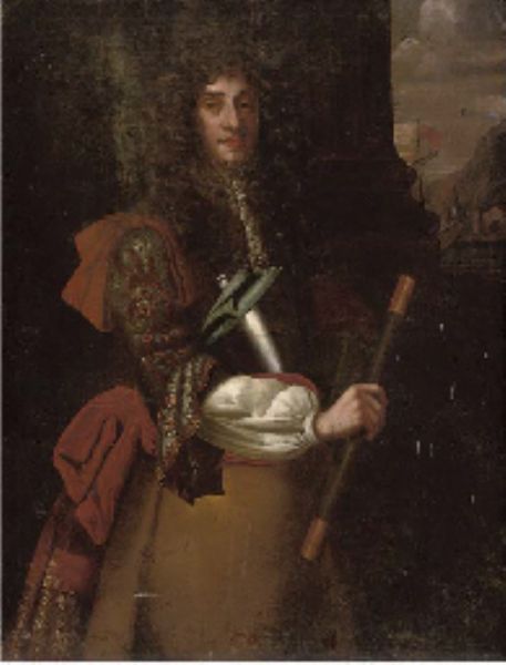 | Portrait of James II (1633-1701), three-quarter-length, a telescope in his right hand, with ships beyond | |