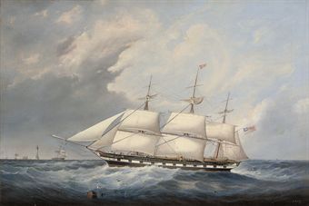 | The Aphrogencia running past the Eddystone lighthouse on her maiden voyage | |