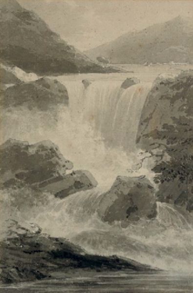 Pencil and grey wash on oatmeal paper, on the artist's wash-line mount