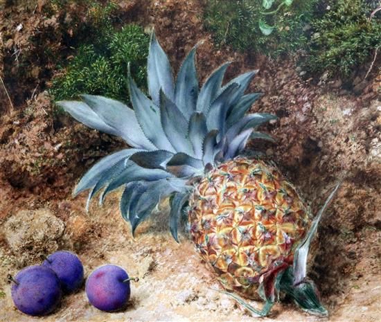 Still life of a pineapple and plums