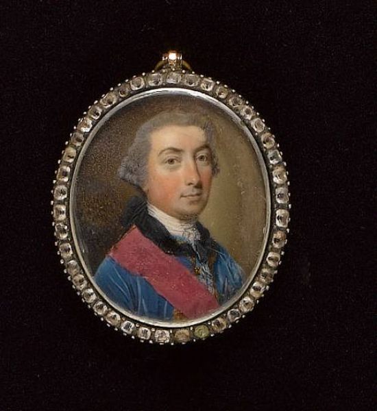 | A Gentleman, wearing blue coat with velvet collar and gold frogging, red sash and breast star of the Order of the Bath, pale blu | |
