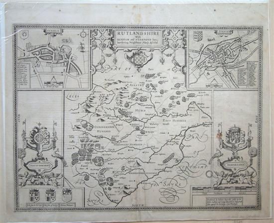 Map of Rutlandiae with prospects of Oufham and Stanford 1611, 1st edition
