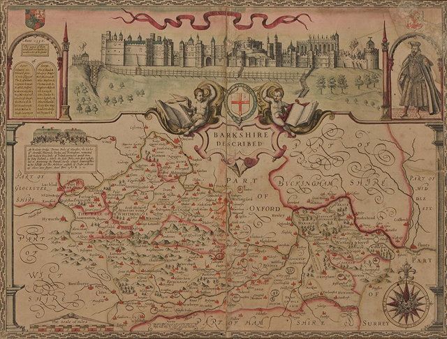showing Part of Oxford, Buckinghamshire and Wiltshire, with panoramic view of Windsor Castle above