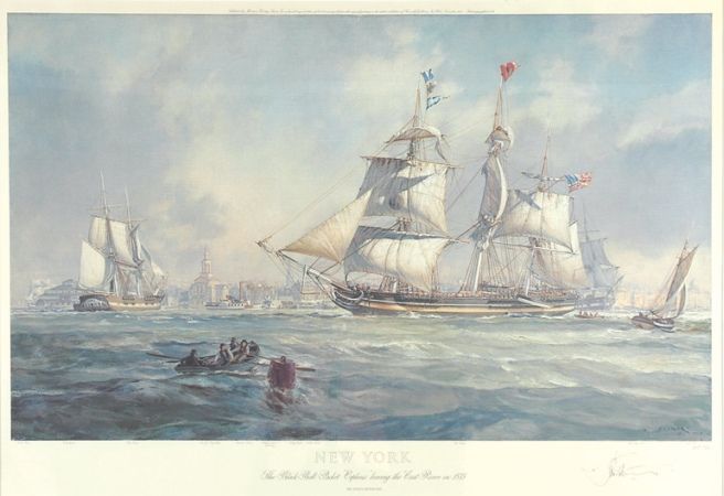 | NEW YORK: THE BLACK BALL PACKET `ORPHEUS` LEAVING THE EAST RIVER IN 1835 | |