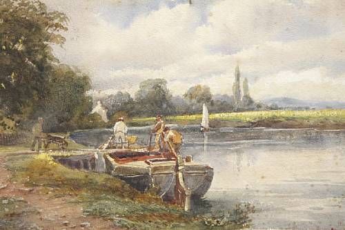 Figures on a barge