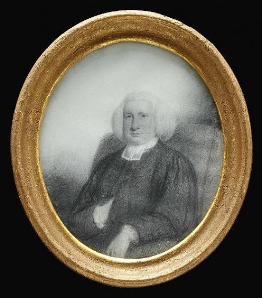 | Dr. Lowry of Queen's College, Oxford, seated, wearing black robes, white bands and powdered bag wig, his right hand tucked insid | |