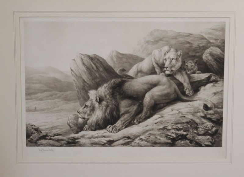 Stalking lions behing a rock