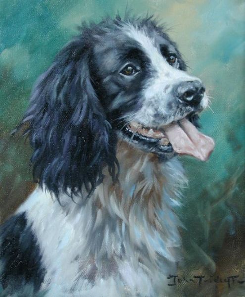 Study of a black-and-white English Springer Spaniel
