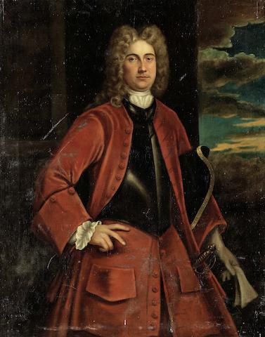 | Portrait of an officer, half-length, wearing a breastplate and a red velvet coat, holding a hat | |