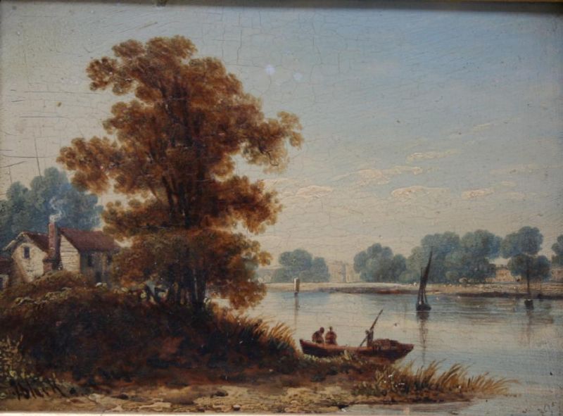 | A RIVER LANDSCAPE SCENE, POSSIBLY A VIEW ON THE THAMES | |