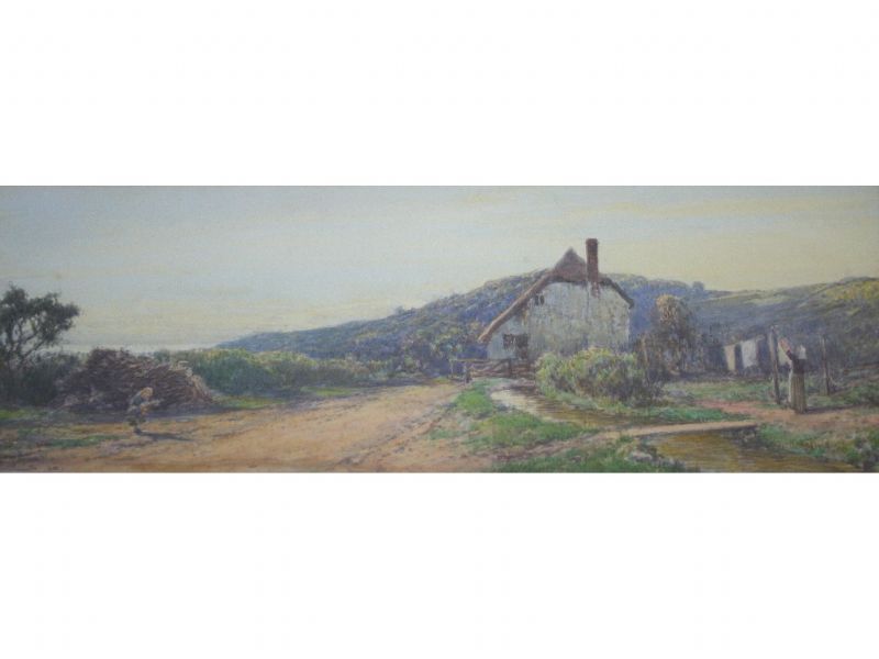 COTTAGE SCENE WITH A WOMAN AND A CHILD