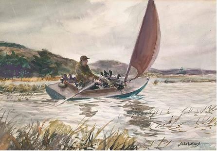 COASTAL FISH SHACKS WITH DUNES BEYOND.