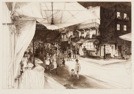 Pair: Night in Chinatown with Lighted Windows; Freighting