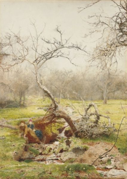 | Pencil and watercolour with gum arabic, with scratching out | |
