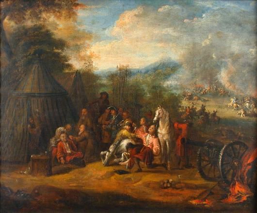 A Cavalry Skirmish with an Injured Cavalryman and a Grey Horse in the Foreground