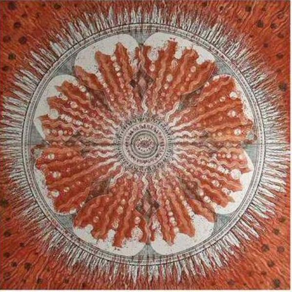 Etching black ink, acrylic and crayon