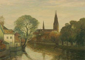 Motiv från Fyrisån med domkyrkan, Uppsala