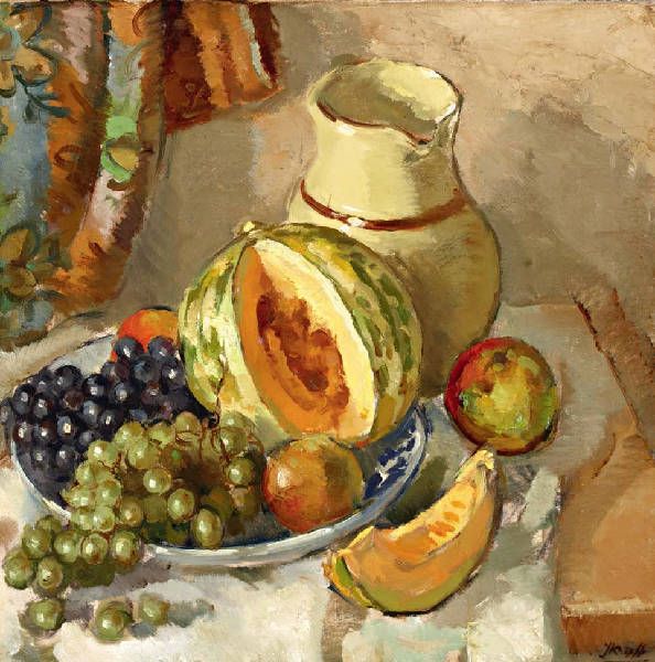 Stilleven met meloen en druiven