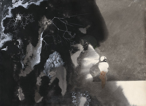 | Watercolor Brush in white and black and pencil on light Velinkarton | |