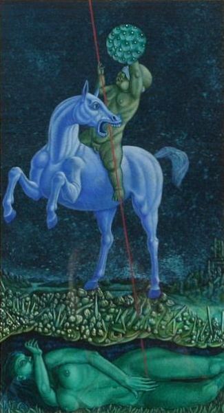 Figure composition with woman and rider.