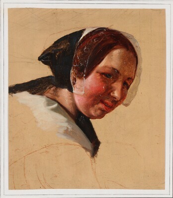 Study of a peasant girl. Unsigned. Oil, pencil and red chalk on paper. Sheet size 230×195 mm. | |
