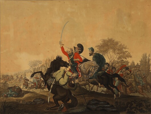Battlescene from the Napoleon wars Handcoloured aquatint
